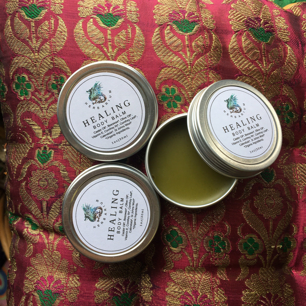Healing Body Balm in 1 oz (30 ml) tin with a screw top.