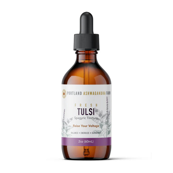Our Tulsi tincture is made using freshly harvested Tulsi, biodynamically grown in the hills outside of Portland, OR.